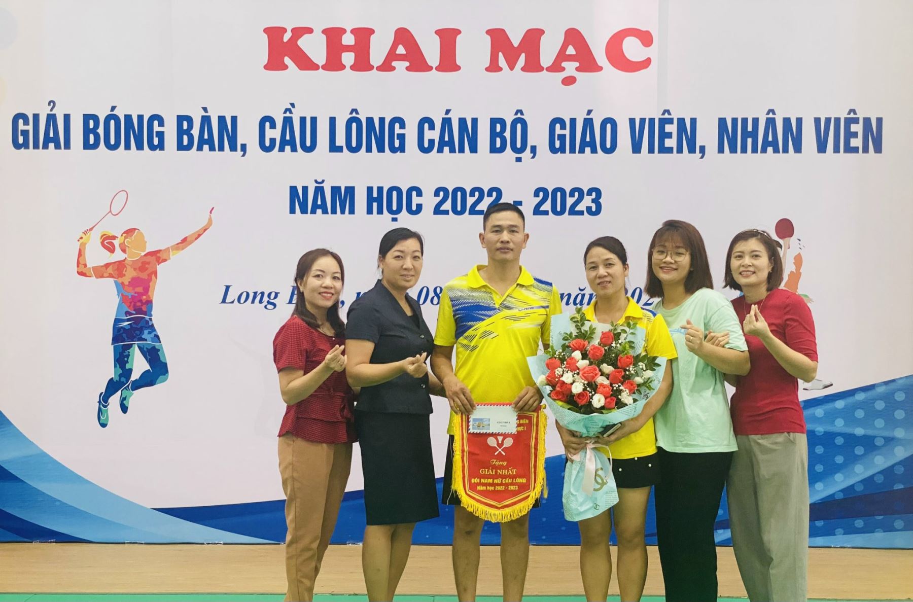 Căn cứ Kế hoạch số 24/KH-PGD&ĐT ngày 12/9/2022 của phòng GD&ĐT quận Long Biên về việc tổ chức giải Bóng bàn, Cầu lông ngành GD&ĐT quận Long Biên năm học 2022-2023. Sáng thứ bảy, ngày 08/10/2022, tại nhà thể chất trường Tiểu học Đoàn Khuê, cô giáo Nguyễn Thị Thái- phó hiệu trưởng nhà trường và nhân viên Lê Văn Cương đã đại diện cho cán bộ, giáo viên, nhân viên trường mầm non Nắng Mai tham dự nội dung cầu lông đôi nam nữ dưới 45 tuổi trong “Giải bóng bàn, cầu lông cán bộ, giáo viên, nhân viên năm học 2022-2023” - Khu vực 1 do Phòng GD&ĐT quận Long Biên tổ chức. Để chuẩn bị tốt cho giải đấu, 2 vận động viên đã tích cực cùng nhau luyện tập hàng ngày. Với tinh thần thi đấu quyết tâm, hết mình, 2 vận động viên đã giành được giải Nhất trong sự cổ vũ nhiệt tình của CBGVNV nhà trường./.