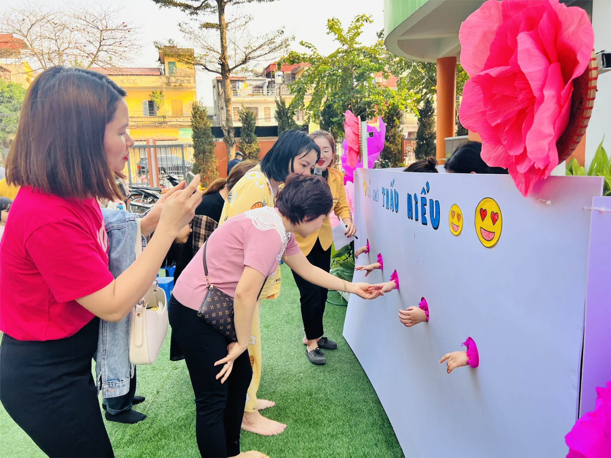 Nhân kỷ niệm 114 năm ngày 8/3, trường Mầm non Nắng Mai đã tổ chức chuỗi các hoạt động cho các bé nhằm hướng đến ngày lễ đặc biệt này. Bên cạnh hoạt động khám phá trò chuyên về ngày Quốc tế phụ nữ 8/3 nhằm củng cố cho trẻ những hiểu biết về ngày lễ đặc biệt này, các cô giáo còn tổ chức rất nhiều hoạt động có ý nghĩa. Mở đầu tuần lễ, bố và bé cùng viết những lời tri ân và những tình cảm gửi tới cô và mẹ. Cô giáo cùng các bé đã tạo nên những bó hoa tươi thắm kèm theo lời chúc tốt đẹp ấy gửi đến mẹ. Cùng với đó là những Chương trình văn nghệ, liên hoan chào mừng. Đặc biệt vào chiều 6/3 nhà trường còn tổ chức Chương trình giao lưu giữa mẹ và bé nhằm khắc sâu những tình cảm bền chặt của hai mẹ con và làm dầy hơn những kỹ niệm khi các con dưới mái trường MN Nắng Mai. Sau đây là một vài hình ảnh: