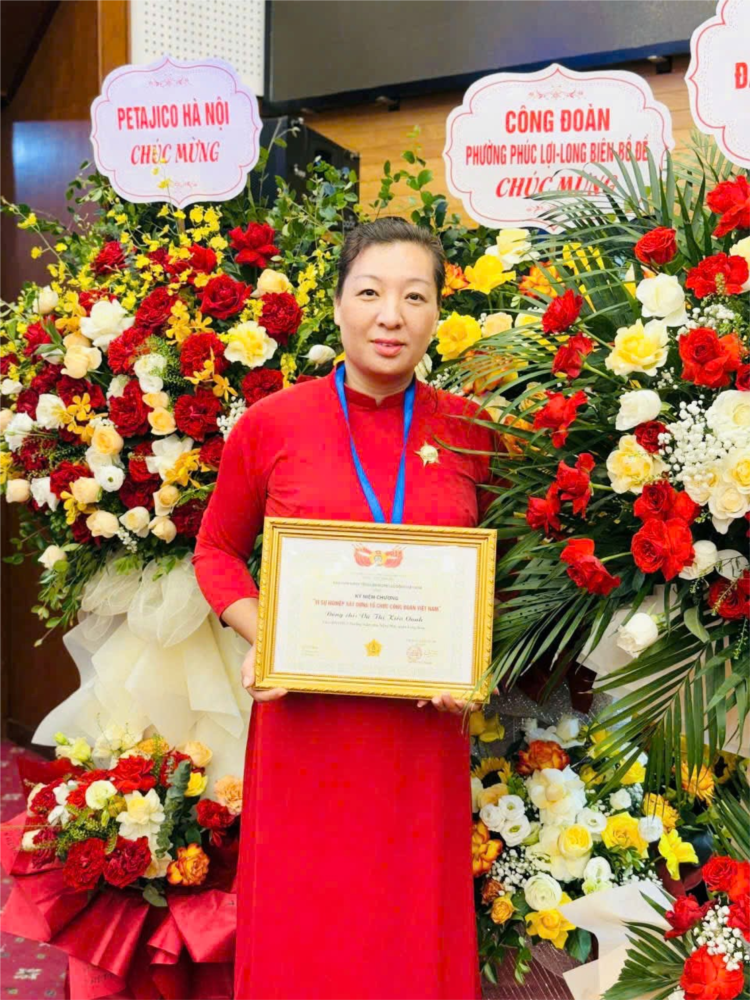 Bên cạnh nhiệm vụ chuyên môn và công tác Đảng, đồng chí Vũ Thị Kiều Oanh còn đảm nhiệm vai trò Chủ tịch Công đoàn nhà trường. Với tinh thần trách nhiệm và sự tận tâm, đồng chí luôn quan tâm chăm lo đời sống vật chất, tinh thần của cán bộ, giáo viên, nhân viên trong nhà trường.